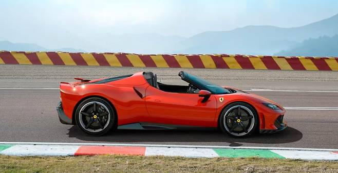 • 더 날카로워진 공기역학: 전면부의 에어로 댐퍼, 후면의 감마 윙, 그리고 새롭게 디자인된 디퓨저는 다운포스를 극대화합니다. 250km/h에서 435kg의 다운포스를 생성하며, 이는 기본 296GTB보다 훨씬 높은 수치입니다. 향상된 공기역학 성능은 트랙에서 더욱 안정적인 주행을 가능하게 합니다.