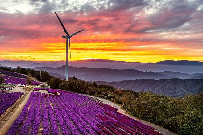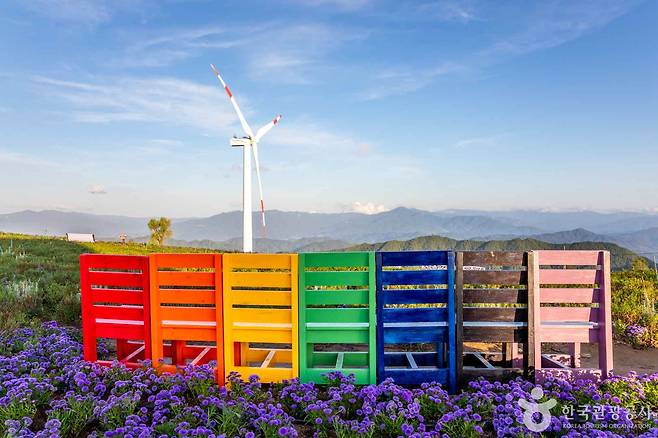 드넓은 언덕 위로 줄지어 선 풍력발전기와 알록달록 꽃들이 어우러진 풍경은 마치 외국의 고원지대를 옮겨놓은 듯한 이국적인 느낌을 줍니다. 걷기만 해도 마음이 편안해지는 이곳은 가족 나들이는 물론 사진 명소로도 인기가 많아요.