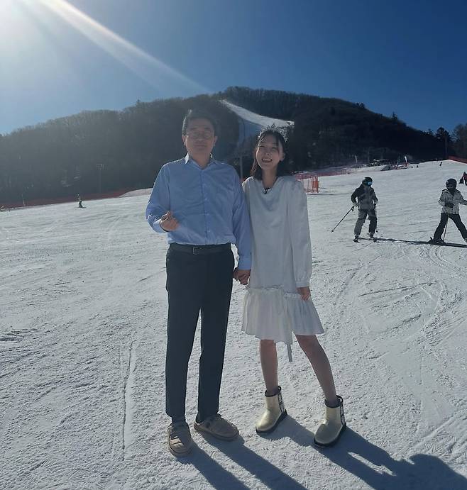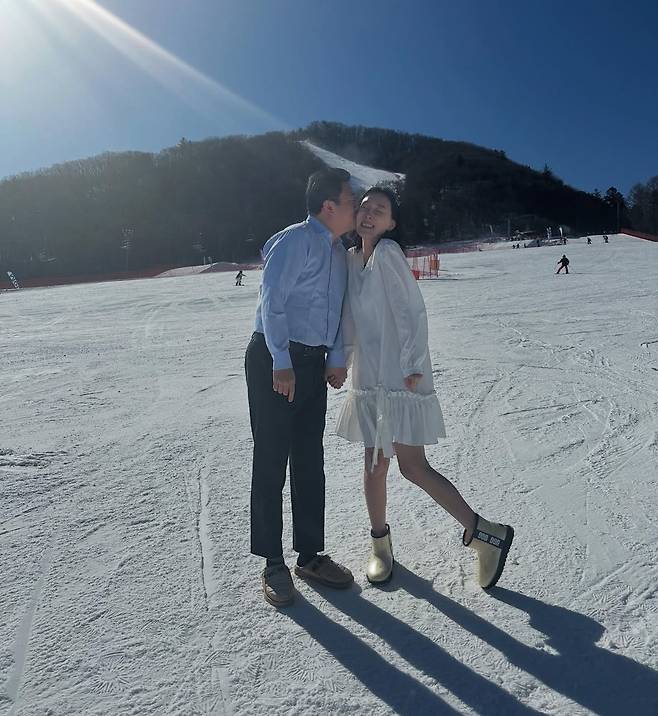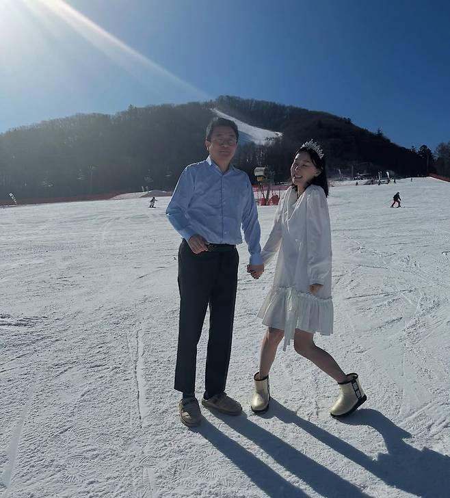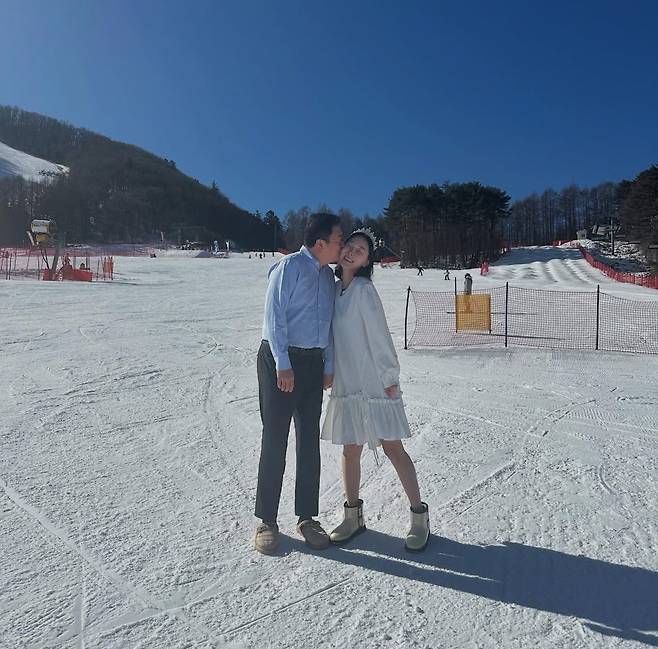스키장 눈 밭에서 리마인드웨딩 느낌의