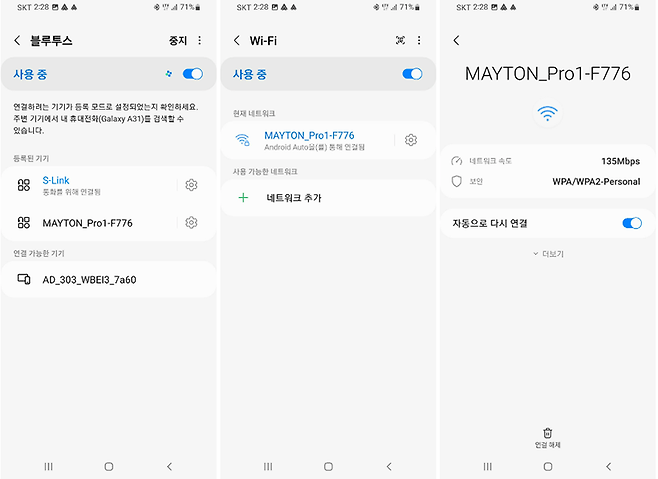 이제 스마트폰의 블루투스와 와이파이를 활성화한 후 블루투스 설정에서 검색을 해서 ‘MAYTON_Pro1_0000’이라는 명칭의 기기를 연결한다. 블루투스 등록이 완료되면 와이파이 설정은 자동으로 진행되는데, 약 20초 가량 기다리면 연결이 완료된다.