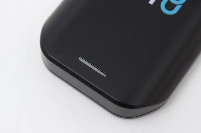 앞면의 로고 아래쪽에는 가로로 12mm 가량 되는 흰색 라인이 들어가 있는데, 작동 상태를 알려주는 LED 인디케이터이다.