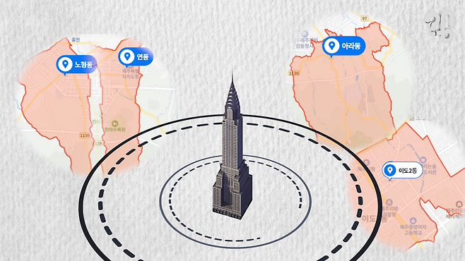 백화점은 일반적으로 점포 한 곳당 3~5㎞ 범위에 수십만 정도는 거주하거나 오가야 하는 걸로 알려져있다. 하지만 최고 밀집지인 연동과 도형동은 합쳐도 인구 10만명이 되지 않는 데다가, 다음 밀집지인 아라동과 이도1동 쪽까지 못해도 6㎞ 이상은 떨어져 있다. 게다가 대중교통도 대도시처럼 원활하진 않으니 조건이 성립하지 않는 거다.