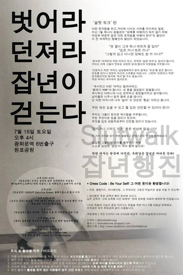 퍼포먼스 사진에 달린 성희롱 댓글들은 그 자체로 2011년 한국사회에 슬럿워크가 왜 필요한지를 보여주는 증거였다. 같은 몸, 같은 복장이어도 이성애적 남성 욕망의 대상이 되기를 거부하는 '저항하는 몸'은 불쾌하거나 유해한 것으로 해석된다. 동일한 복장이었지만, 홍대 밤거리의 클럽에서는 구애의 대상이 되고, 대낮 도심의 페미니즘 시위에 나갔을 때는 '줘도 안 먹는다'는 모욕의 대상이 되는 차이가 재미있었다.