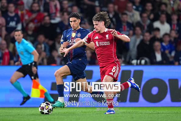 리버풀도 한 차례 기회를 엿봤다. 전반 40분 비르츠의 로빙 패스를 받은 프림퐁이 과감한 오른발 슈팅을 때렸지만 골문을 외면했다. PSG가 완벽한 역습을 보여줬다. 전반 42분 비티냐부터 시작한 공격이 크바라츠헬리아, 두에를 거쳐 우측면으로 향했다. 뎀벨레가 마무리 슈팅을 때렸지만 임팩트가 제대로 실리지 않았다.