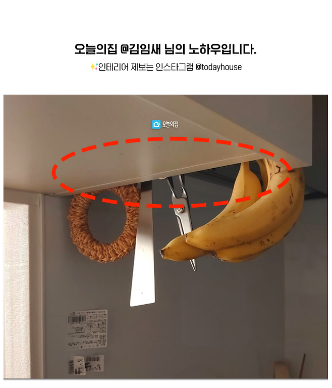 바나나 스탠드 구입 고려하셨던 분들은 자리 차지하는 스탠드 대신 S자 고리 + 자석후크 수납 어떠신가요? 좁은 주방에서 바나나만이라도 공중 부양 시켜주면 속이 시원하더라고요.