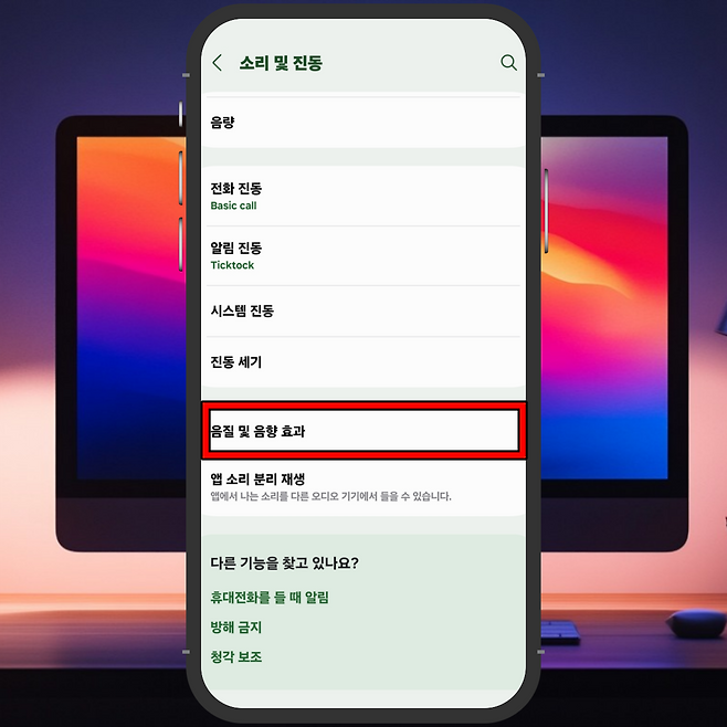 3) 화면을 아래로 스크롤 하여 음질 및 음향 효과로 이동