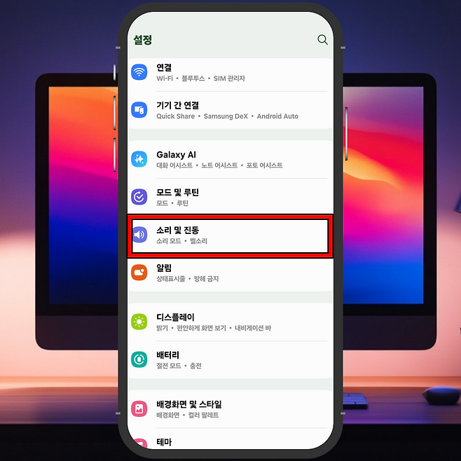 2) 소리 및 진동 메뉴 선택