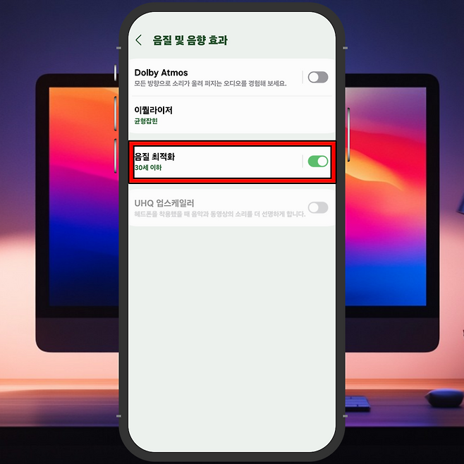 4) 음질 최적화를 '사용 중'으로 변경한 뒤 다시 음질 최적화 메뉴를 선택합니다.