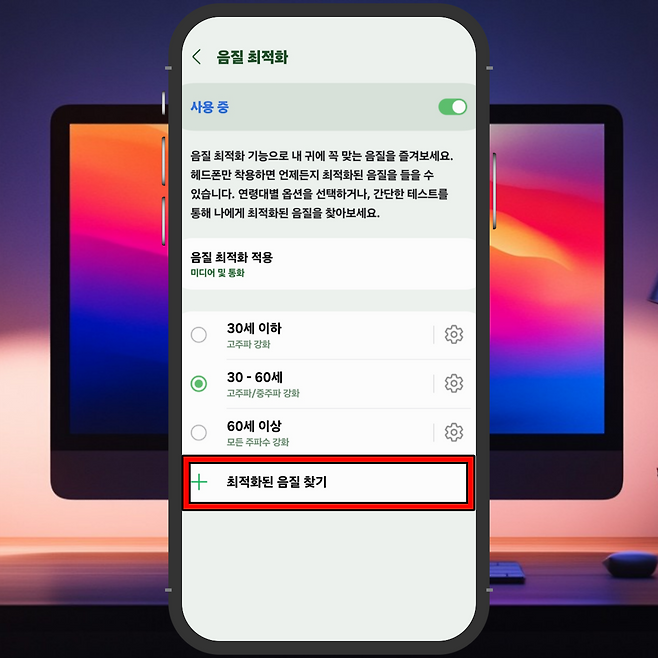 1. 음질 최적화 메뉴에서 '최적화된 음질 찾기' 선택