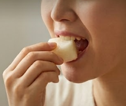 ▶ 씹는 과정에서 침 분비가 증가해 입속 세균을 씻어내고 산도를 중화해줍니다
