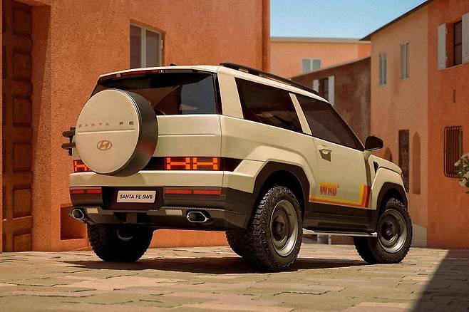 국내 자동차 크리에이터 그룹 WRD에서 공개한 신형 싼타페 숏바디 모델 렌더링은 5세대 싼타페의 디자인 요소에 과거 갤로퍼 숏바디 모델이 떠오르는 레이아웃이 반영된 것이 특징이다.