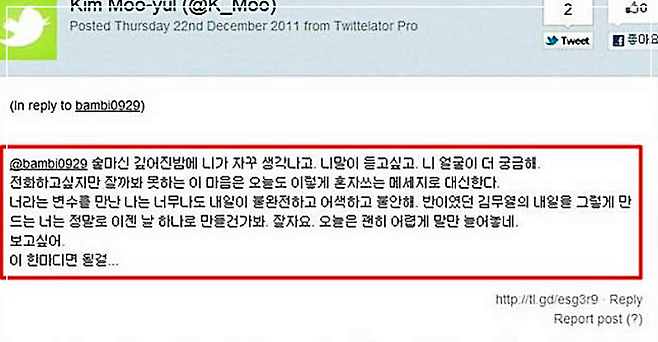 이 로맨틱한 문장을 단 둘만 알고 있었더라면 좋았겠지만, 실수로 전체공개된 덕분에 메시지는 삽시간에 퍼졌고, 열애설은 순식간에 기사화됐습니다. 당황한 김무열은 식은땀을 흘렸지만, 윤승아는 “괜찮아, 뭐. 이렇게 된 거 공개 연애하자”라며 쿨한 반응을 보여 모두를 놀라게 했죠.