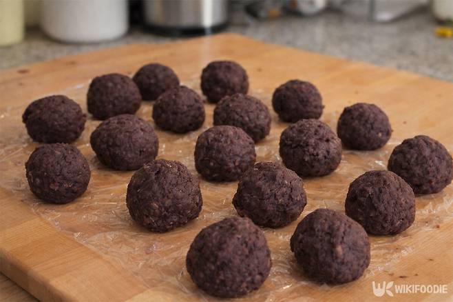 4. 식은 팥소를 여덟 개로 동그랗게 나눠둔다.