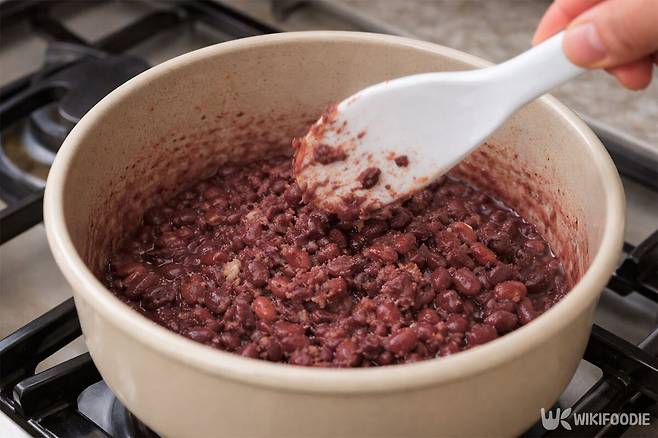 먼저 씻은 팥을 두꺼운 냄비에 담고 센불에서 10분간 끓인다. 이는 팥의 떫은맛을 없애는 과정이다. 불을 가장 약하게 줄인 뒤 1시간 이상 뜸 들이듯 더 끓인다. 주걱으로 눌렀을 때 팥알이 쉽게 뭉개지면 적당하다.