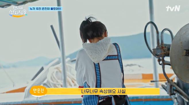 안은진은 "너무 속상하다. 열심히 일하고 싶은데 바다 나갔을 땐 전혀 도움이 되지 못하는 그런 사람이다"라며 속상해했다. 염정아와 차태현은 그런 안은진을 다독여줬다. 안은진이 민망해하지 않도록 차태현은 "보지 마라. 계속 팔딱거린다"고 말했다. 염정아는 열심히 조업에 참여했다. 천직을 찾은 듯한 염정아의 능숙한 모습에 차태현은 "여기 집 하나 하셔야겠다"라고 추천해 웃음을 자아냈다. 안은진도 "언니 너무 잘한다"며 감탄했다.