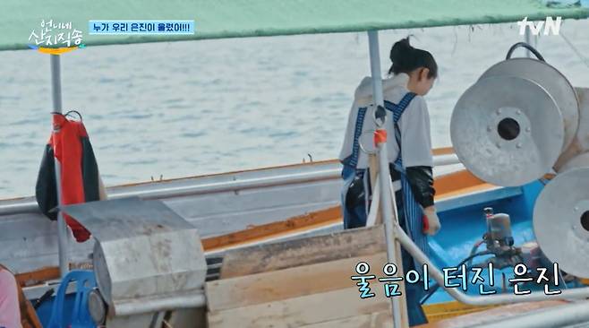 양태가 거세게 움직이자 안은진은 기겁하며 자리에서 벌떡 일어났다. 선상이 겨우 진정된 상황. 안은진은 "무섭다"며 배 한편에서 울고 있었다. 염정아는 "어떡하냐, 무섭대"라며 안타까워했다.