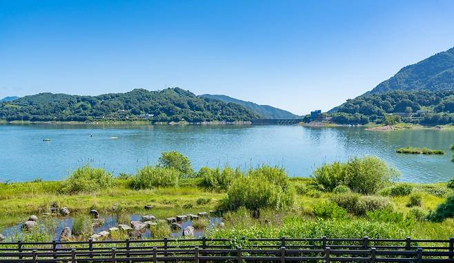 이른 새벽에는 산안개와 물안개가 어우러져 신비로운 장면을 연출한다. 호수 위에 피어오르는 안개는 마치 수묵화 속에 들어온 듯한 운치를 자아낸다. 낮에는 호수와 산이 조화를 이루어 청량감을 선사하고, 해질녘에는 붉은 노을이 물 위에 드리워져 또 다른 매력을 보여준다.