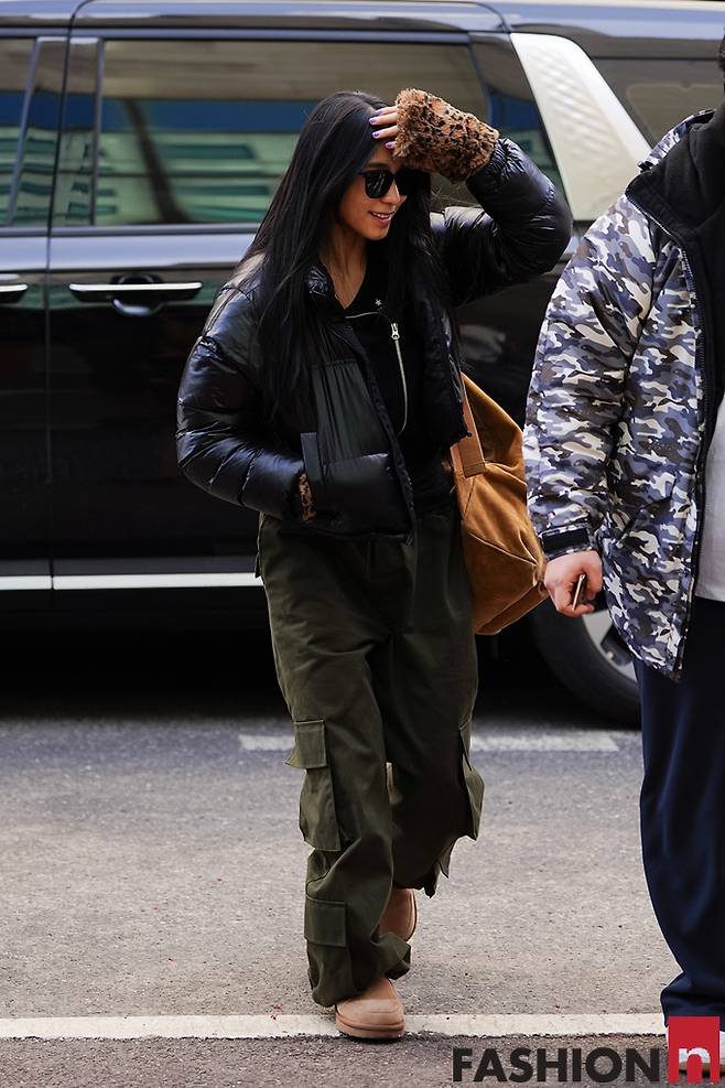 그룹 씨스타19의 보라가 카고 팬츠와 광택 패딩 출근룩으로 힙한 겨울 갬성을 드러냈다.