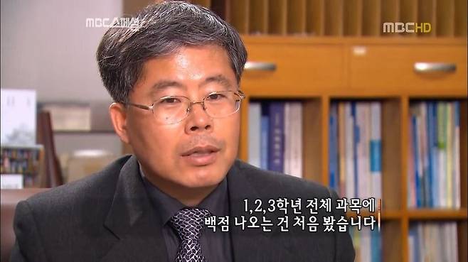 24년째 근무하면서 1,2,3학년 전체 과목에 백점 나오는 건 처음봤습니다