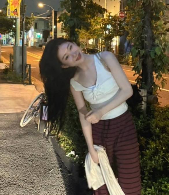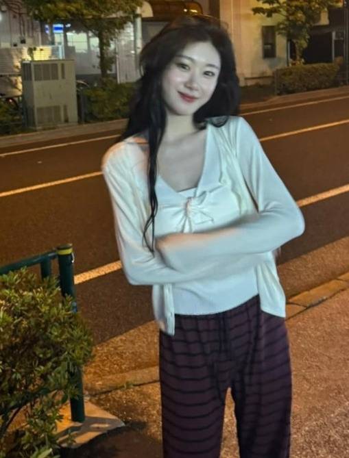 밤이 되면 채령의 스타일은 또 다른 매력으로 변신합니다. 같은 이너를 활용했지만, 전혀 다른 분위기를 연출했는데요. 밤 산책에 어울리는 편안하면서도 스타일리시한 룩을 완성했습니다.