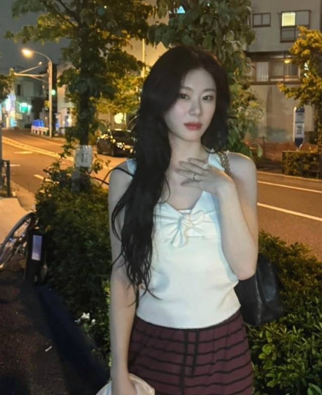 편안함을 우선시하면서도 스타일을 놓치지 않은 채령의 센스가 돋보입니다. 블랙 숄더백은 캐주얼한 룩에 시크한 무드를 더하는 역할을 합니다. 민소매 위에 니트 가디건을 살짝 걸쳐주면, 바람이 불 때 가볍게 걸치기 좋고, 여름밤 데이트룩으로도 손색없는 스타일을 완성할 수 있습니다. 가디건 하나만 걸쳤을 뿐인데 훨씬 단정하고 차분한 분위기가 연출되는 마법!