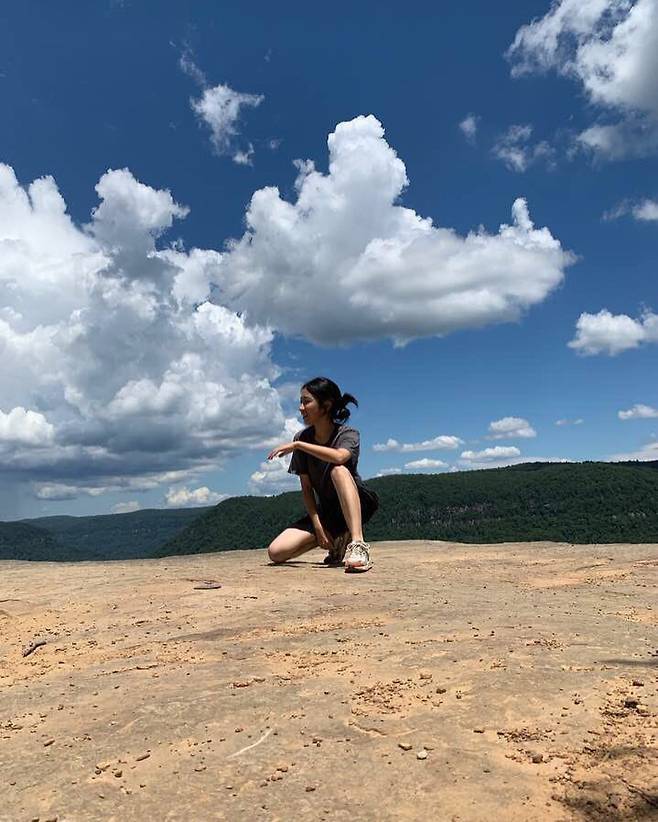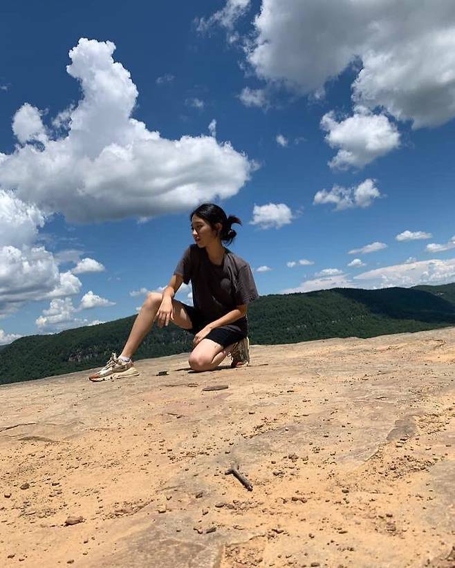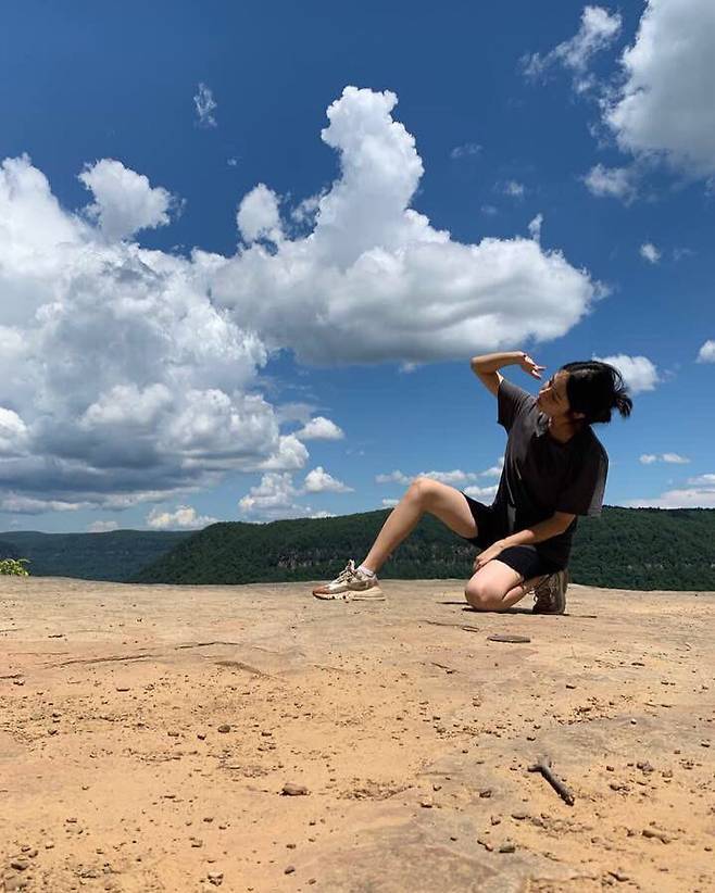 또 다른 컷에서는 푸른 하늘과 맞닿은 절벽 위에 앉아 있었는데,