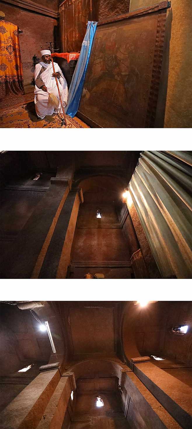 기오르기스 교회는 내부에 기둥들이 있는 다른 암굴교회와 다르게 기둥이 없다.