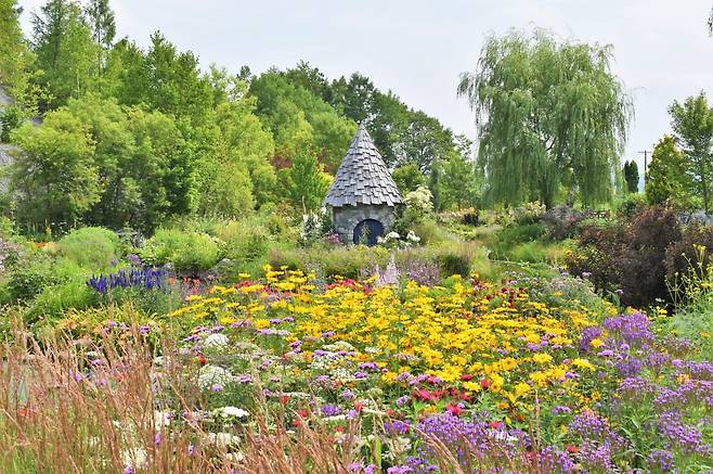 우에노팜은 북부 지방 특유의 개화시기와 선명한 꽃의 색 등 홋카이도의 기후와 풍토에 걸맞은 정원 만들기를 추구하는 ‘홋카이도 가든’의 콘셉트를 가진 농장인데요. 대표적으로 ‘마더스 가든’, ‘미러 보더’를 비롯하여 ‘자작나무 오솔길’ ‘놈(땅의 정령)정원’, ‘샤테키야마’등의 테마정원을 둘러볼 수 있어요.
