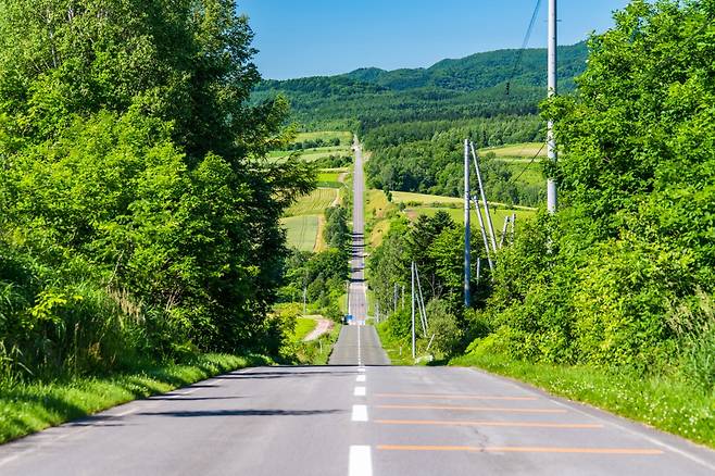 ‘제트코스터의 길’ 이라는 이름처럼 급격한 오르막과 내리막이 2.5km나 계속 되는 이 도로의 매력은 지평선 너머로 보이는 탁 트인 풍경과 함께 평화로운 드라이빙을 즐기는 것이 아닐까 싶네요. 아름다운 구릉과 전원 풍경, 도카치다케 연봉의 경관은 홋카이도 북부 지역의 빼놓을 수 없는 명소랍니다.