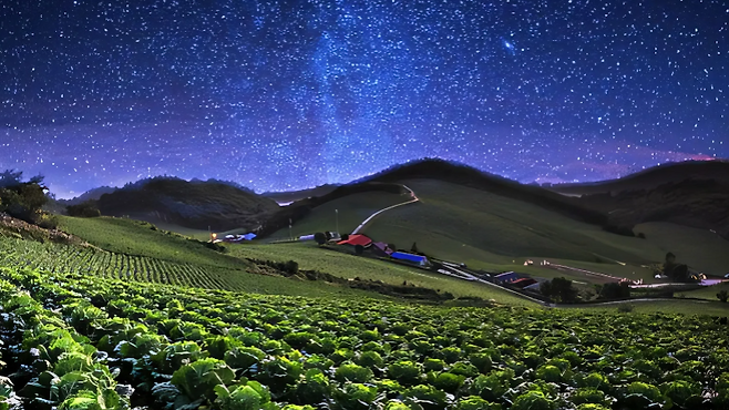 이곳의 매력은 광활함이다. 거대한 배추밭과 풍력 발전기가 어우러진 이국적인 풍경 위로 별이 쏟아진다. 도심의 불빛인 광해(光害)가 거의 없어 맨눈으로도 선명한 별을 볼 수 있다.