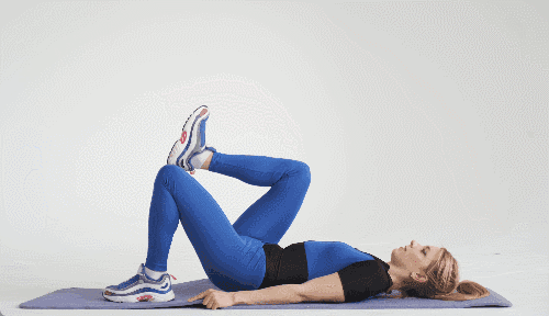 매트에 등을 대고 누운 상태에서 왼쪽 무릎은 세우고, 오른쪽 무릎은 가슴 쪽으로 당깁니다. 엉덩이를 들어 올려 브릿지 자세를 만들고, 오른쪽 다리는 앞으로 곧게 뻗습니다. 이 동작을 반복한 후, 다리 위치를 바꿔서 운동합니다.