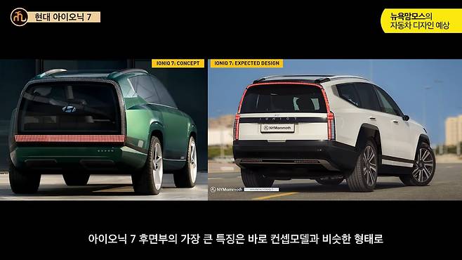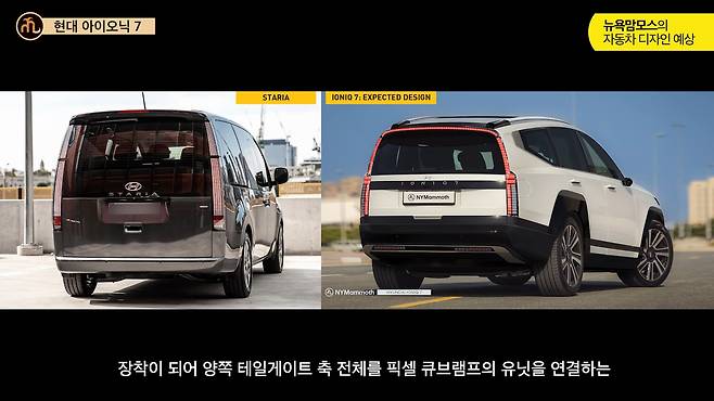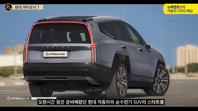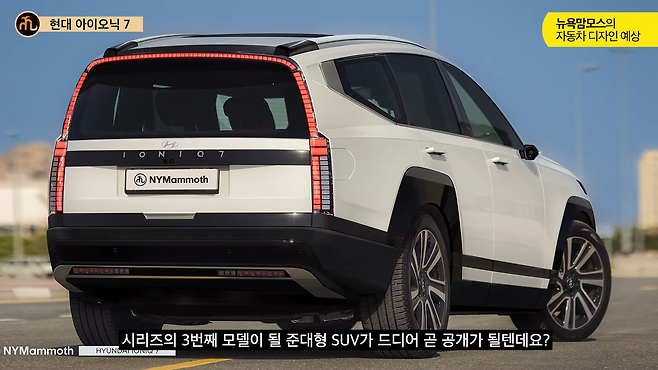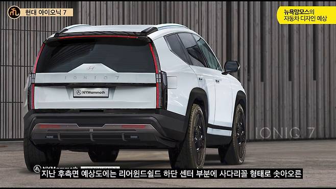 현대자동차의 새로운 전기차 아이오닉 7이 곧 세계 최초 공개를 앞두고 있습니다. 최근 뉴욕맘모스에서 공개한 후측면 디자인 렌더링을 통해 아이오닉 7의 파격적인 후면 디자인이 예고되고 있어 주목됩니다.