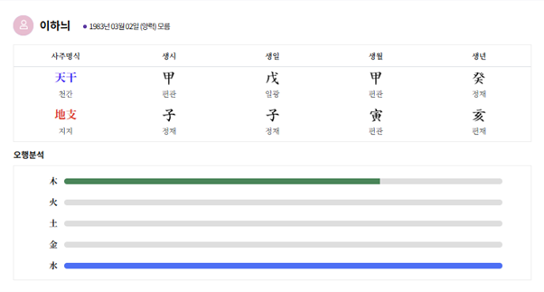 공개된 생년월일이 실제와 다를 경우 결과가 달라질 수 있습니다
