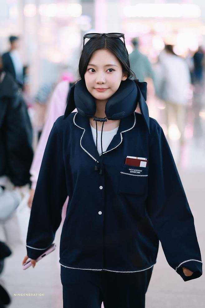 최근 해외 일정 차 인천국제공항에 모습을 드러낸 닝닝은 편안함을 전면에 내세운 파자마 스타일 셋업으로 눈길을 끌었다.