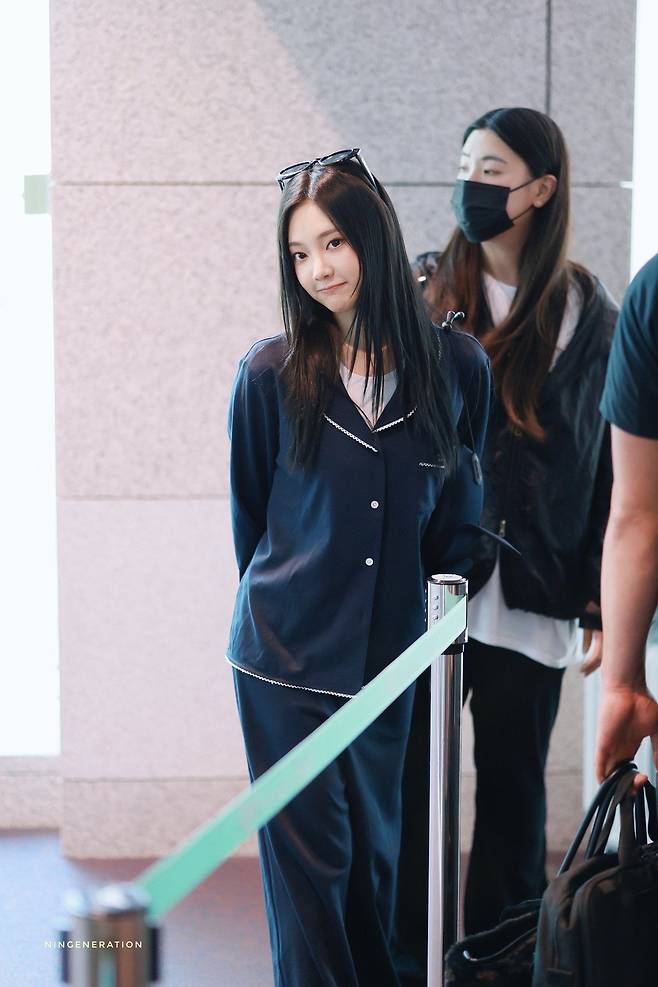 최근 해외 일정 차 인천국제공항에 모습을 드러낸 닝닝은 편안함을 전면에 내세운 파자마 스타일 셋업으로 눈길을 끌었다.