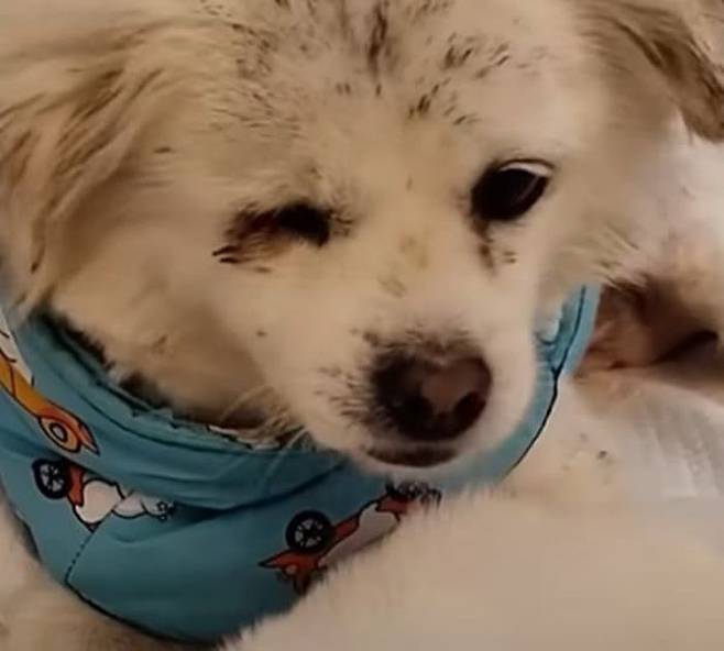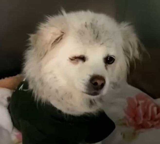 아주머니는 이 유기견이 한족 눈을 잃었음을 발견하게 됩니다. 도저히 그냥 지나칠 수가 없었던 아주머니는 이 유기견을 구조해 데려가려고 했죠.