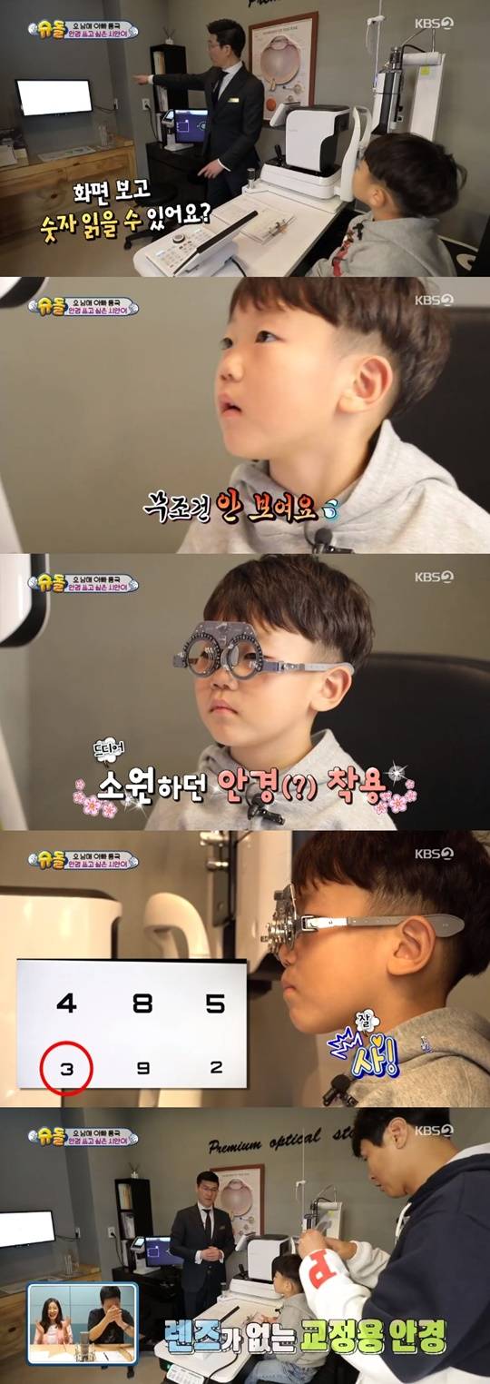 이후 고정용 안경을 씌우자 그제서야 앞에 쓰인 숫자들을 하나씩 대답하기 시작했다. 그러나 시안이가 쓴 안경은 렌즈가 없는 것이었고, 이에 시안이는 당황스러운 눈빛을 보였다.