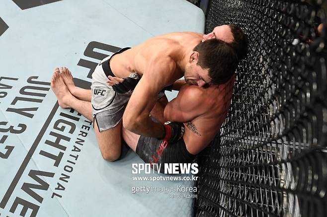 제대로 엉켰다. 2라운드 1분 20초께 옥타곤 중앙에서 둘이 엉켜붙었다. 바닥에서 포지션 싸움이 치열했다.