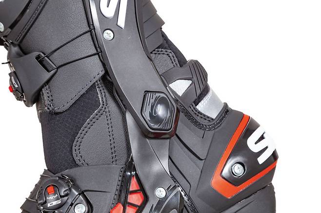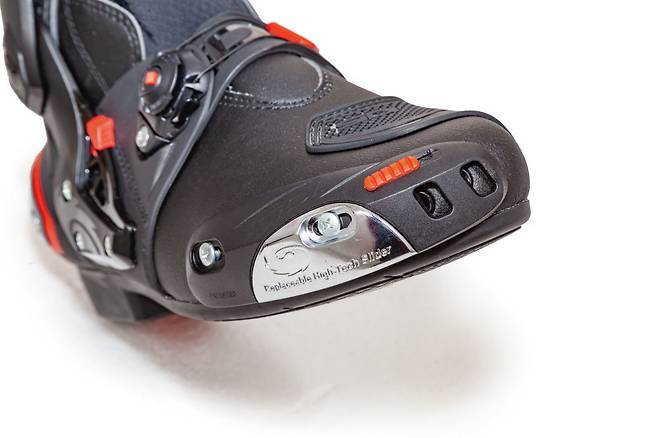 이번에 출시될 REX는 레이스 사양 스포츠 부츠로 시디의 새로운 최상위 모델이다. 시디 플래그십의 디자인을 이어 받아 날렵하면서도 강인한 느낌을 강조했고 새로운 특수 소재를 적용하며 진보된 기술력을 선보인다. 날렵한 생김새는 일단 합격점이다. 발 코에서부터 시작된 날렵한 인상은 슬라이더와 발뒤축의 보호대까지 이어지며 튼튼한 느낌을 준다. 높은 수준의 보호 성능을 내면서도 날렵한 디자인을 유지할 수 있었던 것은 하나의 파트로 구성된 발목 보호대 부분이 한 몫 한다. 일반적으로 부츠 안쪽에 보호대를 숨겨놓는 것에 비해 시디는 이것을 외부로 꺼냈다. 발목 보호대의 구조 그 자체로 슬라이더 역할을 하게해 마찰계수를 줄여준다. 관절 주변부에 조작감이 완성도가 높아 움직임이 자연스럽고 편안하면서도 발목이 가동범위를 벗어나 꺾이는 것을 방지한다.