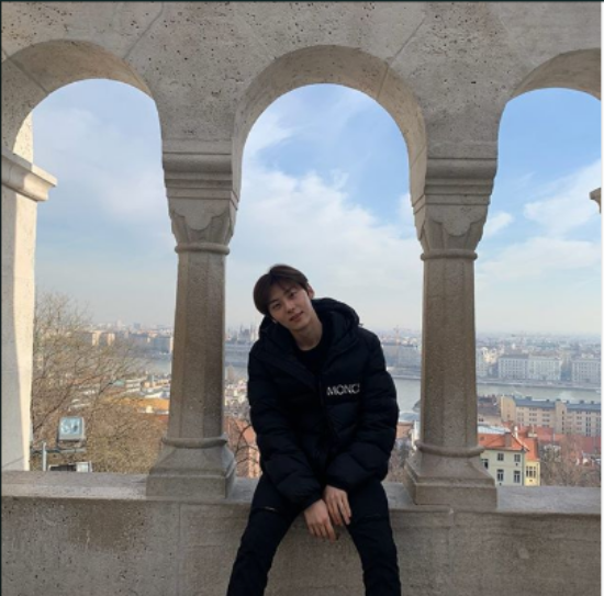 황민현, 유럽에서도 빛나는 얼굴..남친 느낌[★SHOT!]