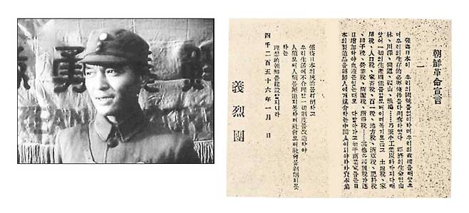 | ▲ IMG_1 조선의열단 김원봉 단장(좌)와 의열단의 조선혁명선언서(우) |