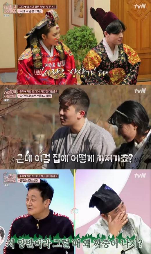 [TV리포트=박귀임 기자] ‘아찔한 사돈연습’ 하재익 문에스더 커플이 전통혼례로 부부가 됐다. 박종혁 김자한 커플은 월동 준비로 바쁜 시간을 보냈다.