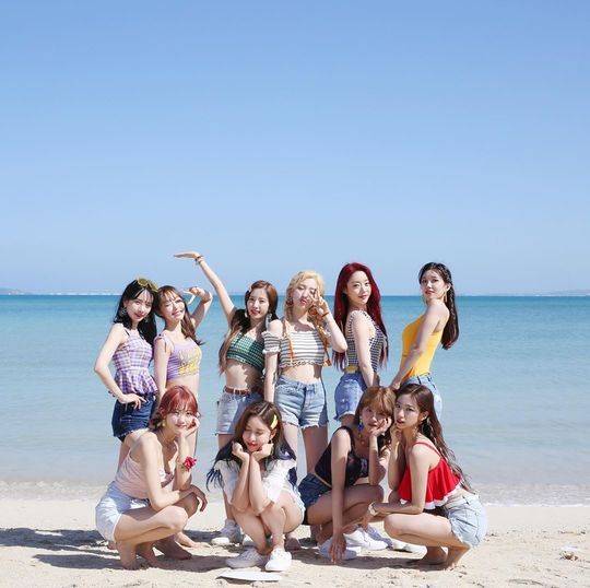 사진 속에는 바닷가를 배경으로 옹기종기 모여있는 멤버들의 모습이 담겼다. 멤버들은 카메라를 향해 밝게 웃고 있다. 멤버들의 늘씬한 몸매와 깜찍한 표정이 시선을 사로잡는다.