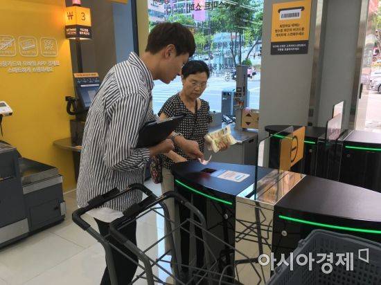 얼마 전 도입됐을때 복잡하지 않을까 걱정도 했지만 막상 이용해보니 저울 위에 물건을 올려놓기만 하면 바코드가 인식돼 계산이 간편했다.