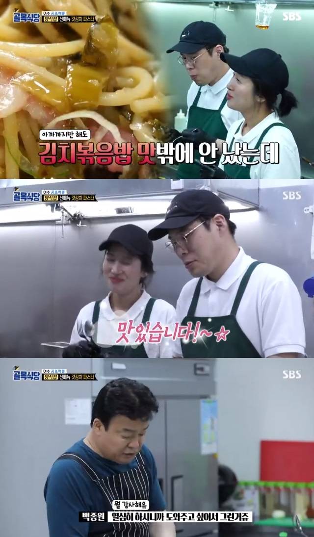 백종원은 그 모습을 지켜보다가 직접 내려가서 갓김치 파스타를 시식했다.