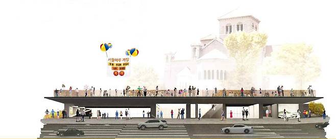 덕수궁 옆에 낮은 규모로 들어선 건물의 지상 층이자 800㎡의 옥상은 시민들이 쉬어가는 휴식과 여가의 공간인 '서울마루'로 재탄생했다. 서울성공회 성당과 서울시의회 건물 등의 주변 경관을 해치지 않도록 가급적 낮게 있는 듯 없는 듯 지어진 것이다. 비움을 통해 원풍경을 회복한다는 취지로 조성한 서울마루는 '세종대로 역사문화공간 조성사업'의 일환으로 덕수궁 돌담을 수평적으로 연장하면서 시민들의 만남의 공간이자 삶의 기억을 나누는 곳으로 운영되기에 손색이 없다. 서울마루 한 켠에는 기존 콘크리트 기둥의 잔해를 남겨놓음으로써 역사의 흔적을 조심스럽게 일깨워준다.