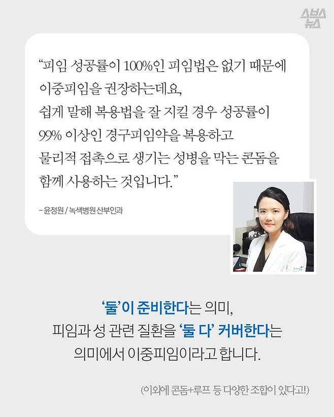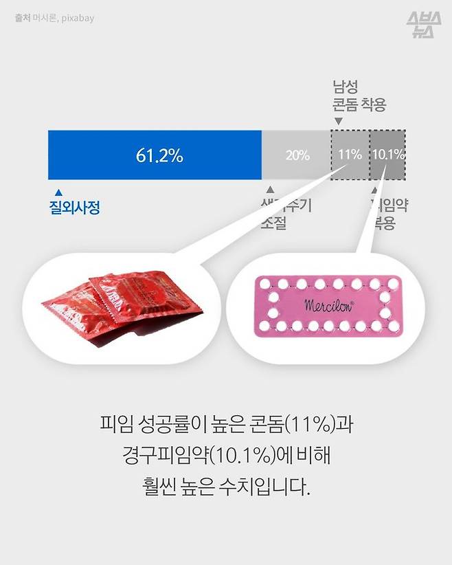 그러나 산부인과 전문의는 질외사정을 피임법으로 보기 어렵다고 합니다. 질외사정으로 100명의 여성 중 22명이 임신할 수 있기 때문입니다. 이런 점에서 산부인과 전문의는 '이중피임'을 강조하는데요, 그게 무엇인지 왜 필요한지 스브스뉴스가 살펴봤습니다.