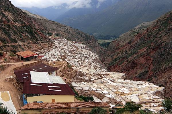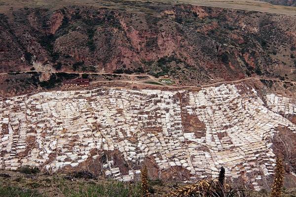 염전은 해발 3000m 고지의 깊은 골짜기 바닥 경사면에 조성되어 있다. 염전 아래로는 우루밤바강이 흐르고 있었다. KBS프로그램 '차마고도'에서 보았던 것과 같이 소금기가 있는 물을 길러 논에 가둬 증발시킨 뒤에 남는 소금을 거둬들이는 줄 알았지만 아니다. 관리사무소 인근 조그만 골짜기에서 도랑을 따라 물이 졸졸 흐르고 있었다.