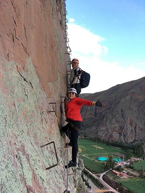 | ▲ 암벽을 타고 암벽호텔로 가는 이원희씨 부부 |