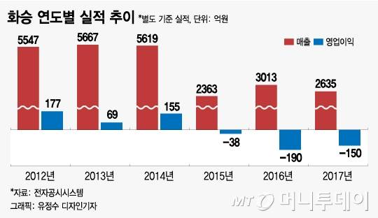 2014년 5619억원이던 화승의 매출은 2015년 2363억원으로 반토막이 났다. 2015년에는 산업은행과 KTB가 공동으로 설립한 사모투자합자회사가 화승을 인수하기에 이르렀다. 이후 2016년에는 3013억원으로 매출이 소폭 늘었지만, 190억원의 영업손실로 적자폭이 커졌고 2017년에는 매출 2635억원, 영업손실 150억원을 기록하는 등 부진에서 벗어나지 못했다.
